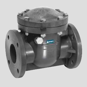 Swing check valves have a solid thermoplastic body with a large "flapper" that seats against the body of the valve. Swing check valves offer a large fluid area with a removable bonnet that allows for the valve body to be cleaned out without removing the valve from the pipeline. This is beneficial for installations that may contain debris or other items that could potentially clog the valve. Check valves are used in applications where it is essential to ensure fluid flow passes in only one direction. Check valves can be mounted in vertical or horizontal directions, with the only restriction being a minimum back-pressure required to properly seat the check valve. Spring assists and lever and weight mechanisms are available options to assist in closing the valve quicker to reduce water hammer concerns.